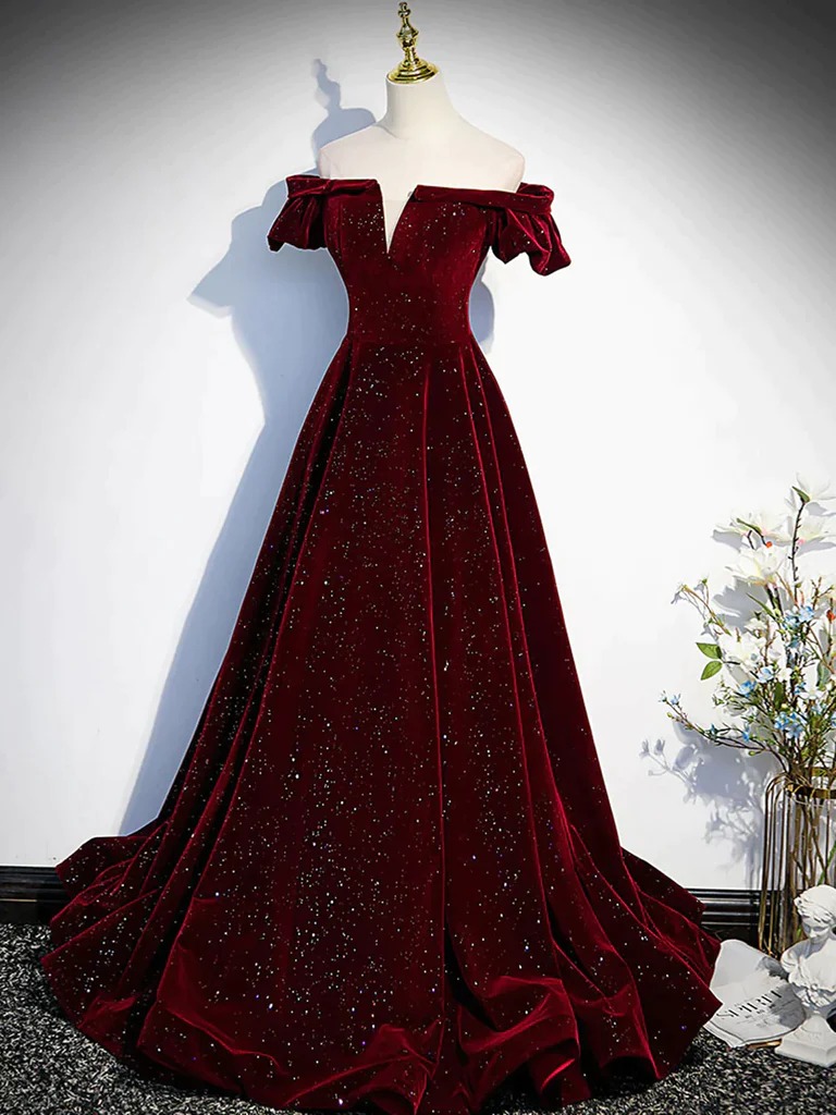 Shiny Off the Shoulder Burgundy Long Prom Dresses, Wine Red Long Formal Evening Dresses,PD230100