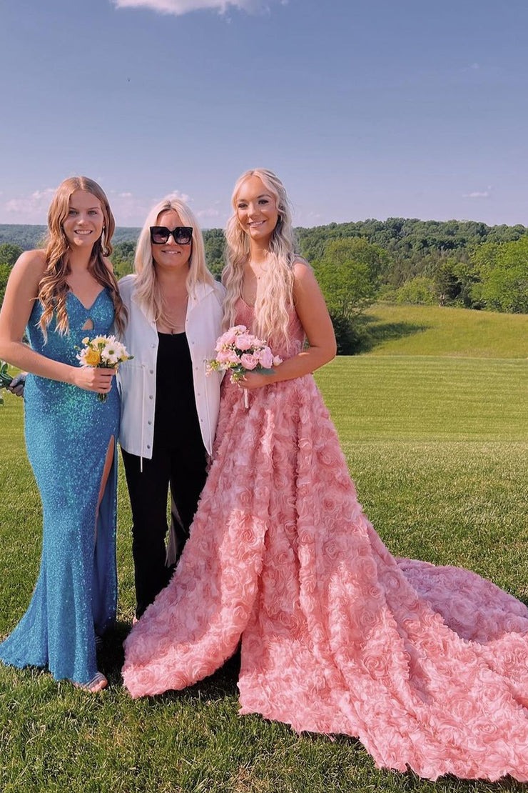 Princess Lace Ball Gown Sweetheart Pink 3D Flower Prom Dresses ,PD230859