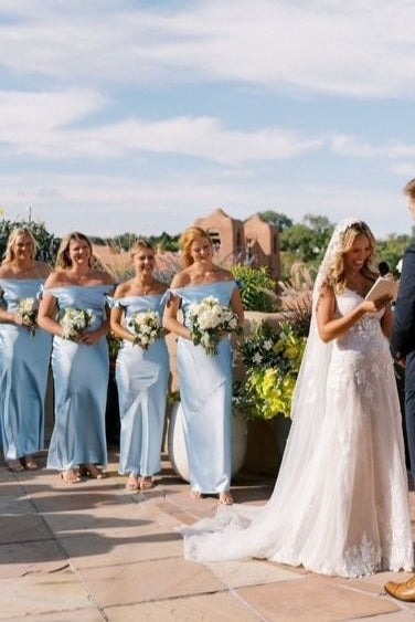 Sheath Off-Shoulder Silk Satin Blue Long Bridesmaid Dress,PD230705