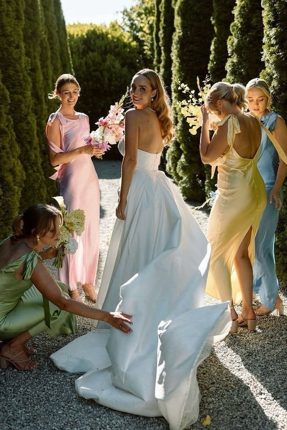 The dresses are made from a high quality, matte-satin jersey fabric. Don't be fooled by the less expensive versions sold overseas - our fabric is a luxurious, high quality fabric that allows for a flattering drape on all body types.