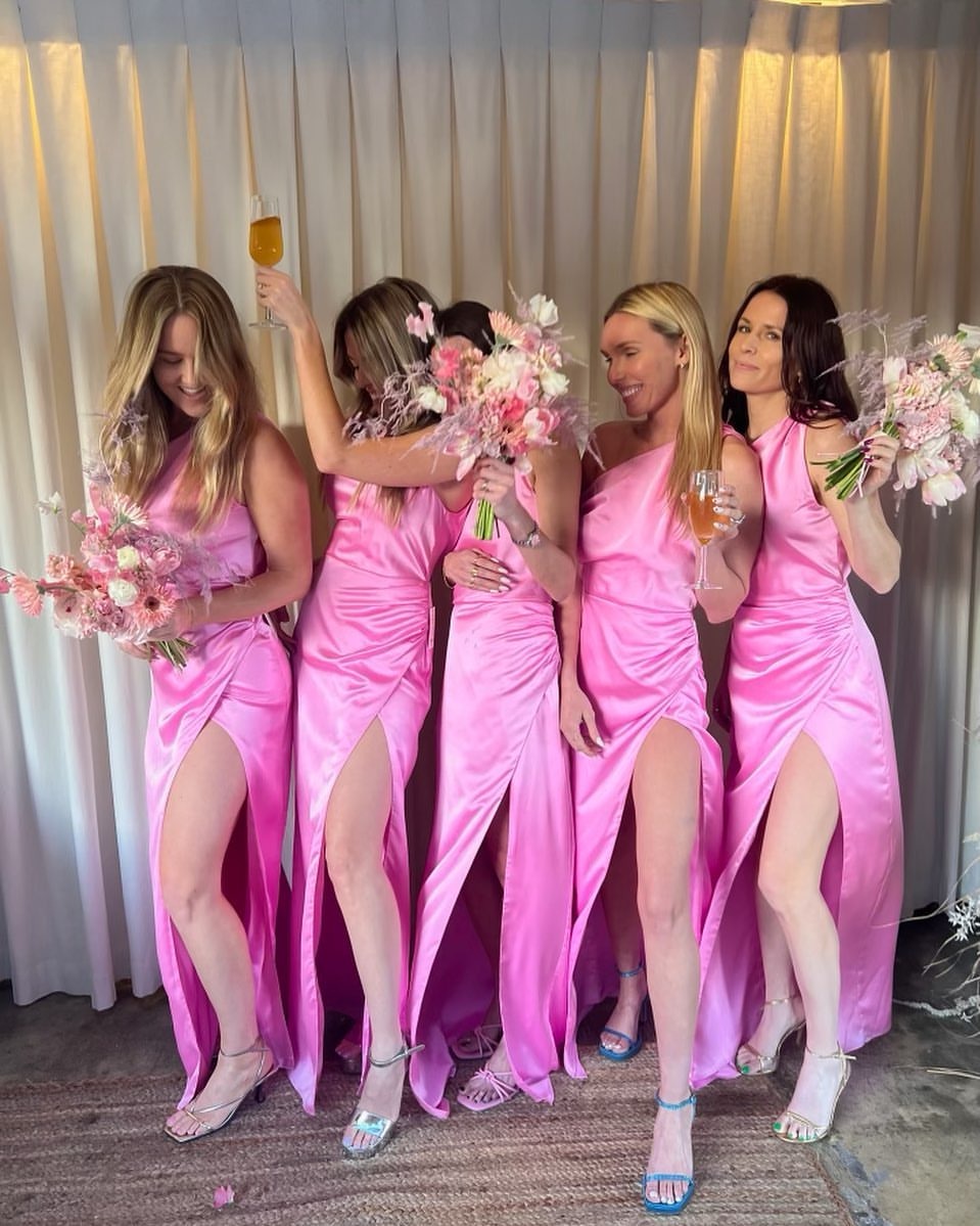 The dresses are made from a high quality, matte-satin jersey fabric. Don't be fooled by the less expensive versions sold overseas - our fabric is a luxurious, high quality fabric that allows for a flattering drape on all body types.