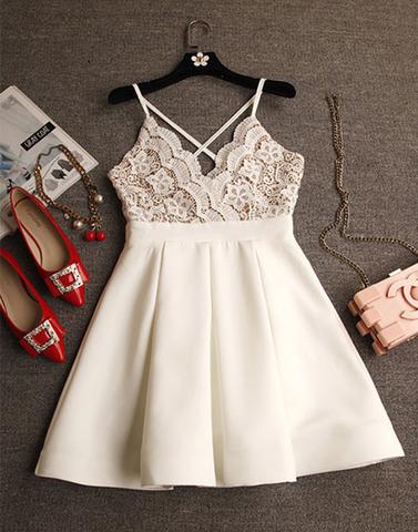 2017 prom dresses,white prom dresses,cute prom dresses,lace prom dress,short prom dress, white homecoming dress,BD170805