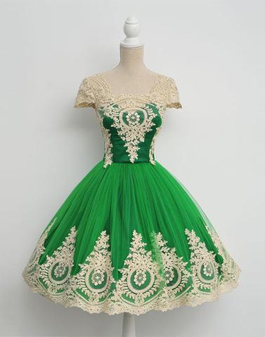 2017 prom dresses,Cute prom dresses,Green prom dresses,lace prom dresses,short prom dress, green bridesmaid dress,BD170433
