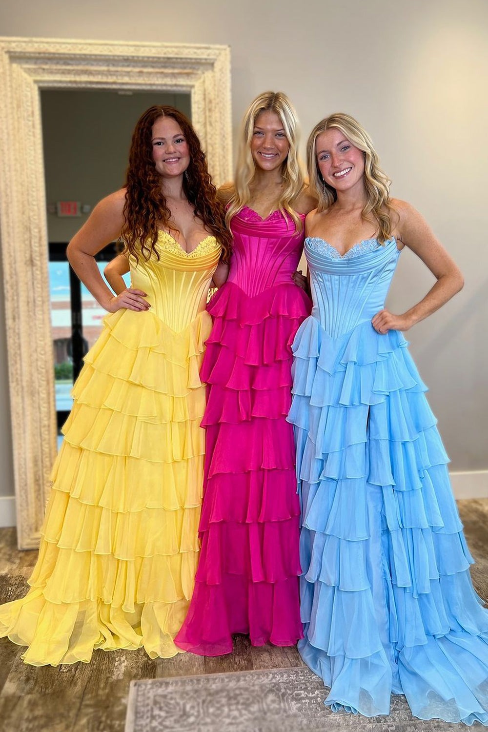 Cute A Line Fashion Hot Sale Sweetheart Tiered Chiffon Long Prom Dress, PD230339