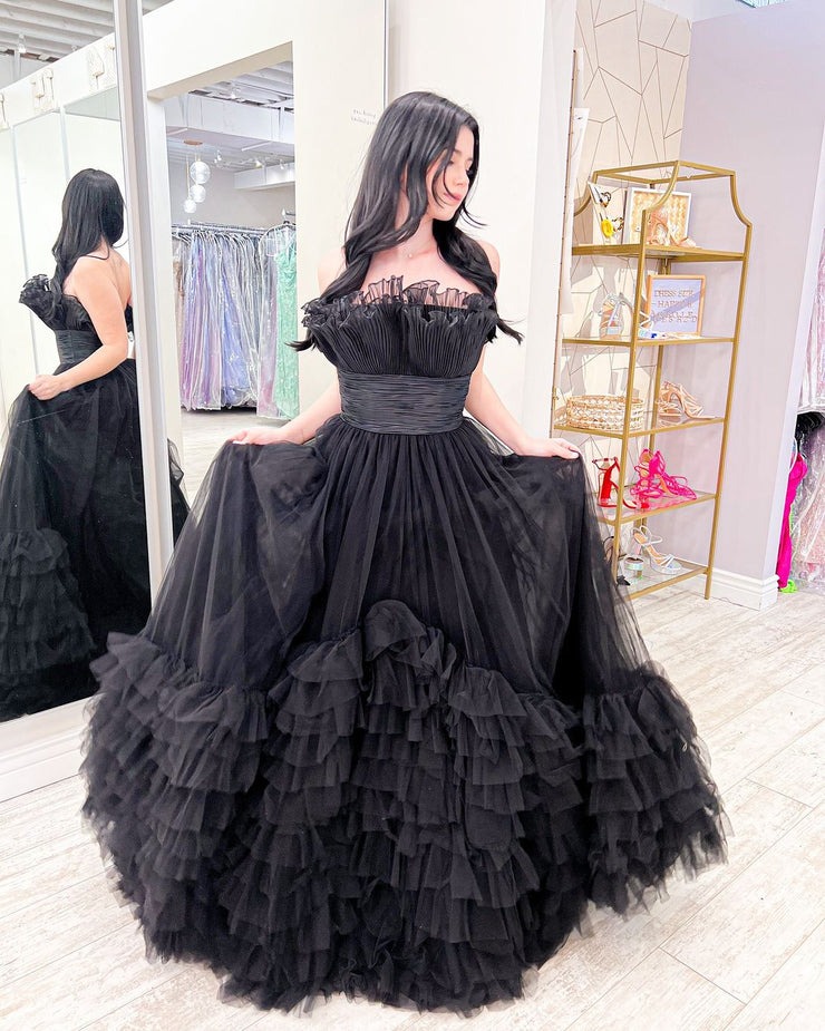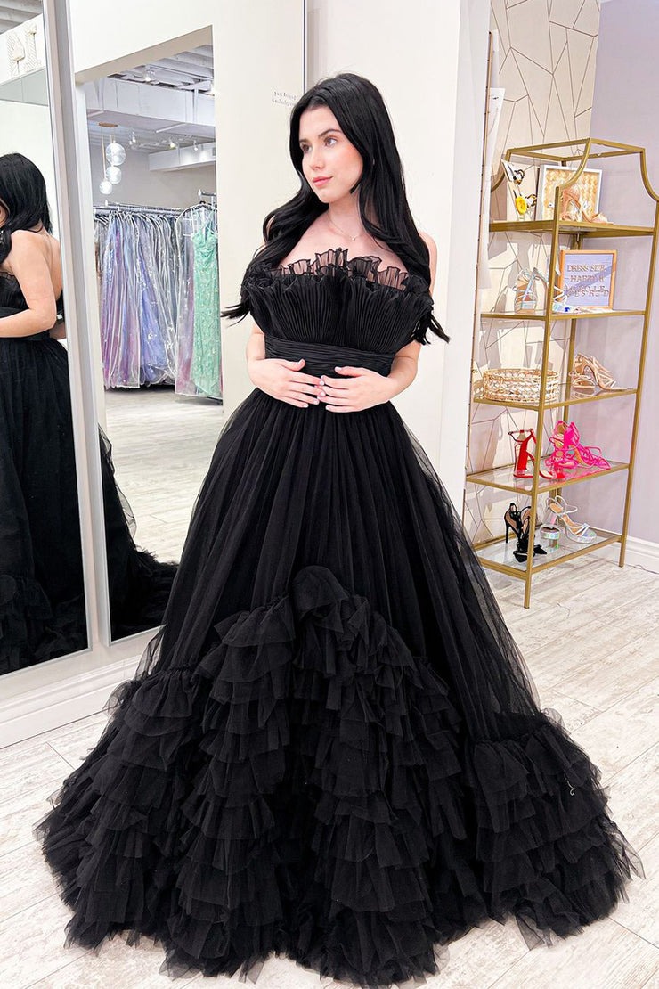 Cute Black Ball Gown Tulle Prom Dresses,PD231127