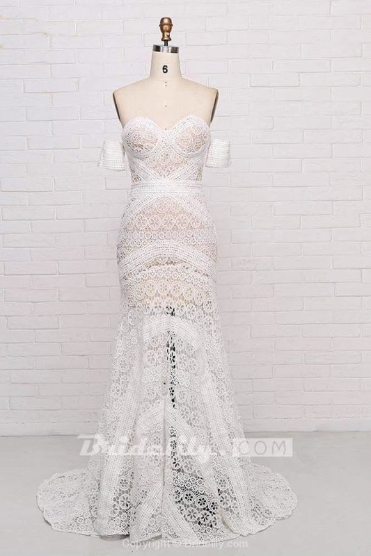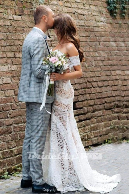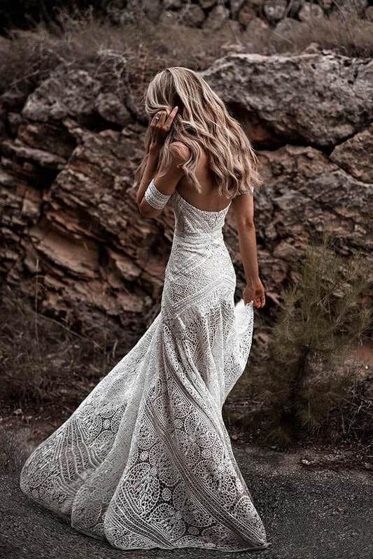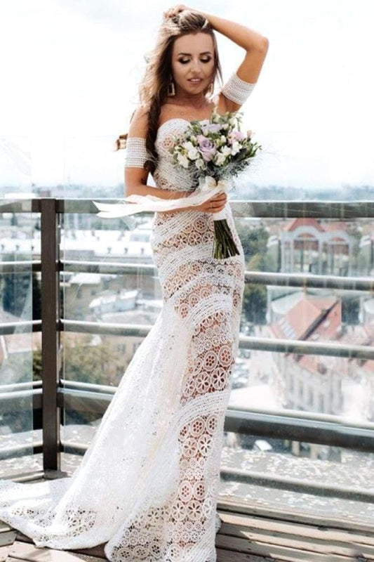 Ivory Lace Beach Wedding Dresses Sweetheart Neck Rustic Boho Wedding Dresses,PD22018