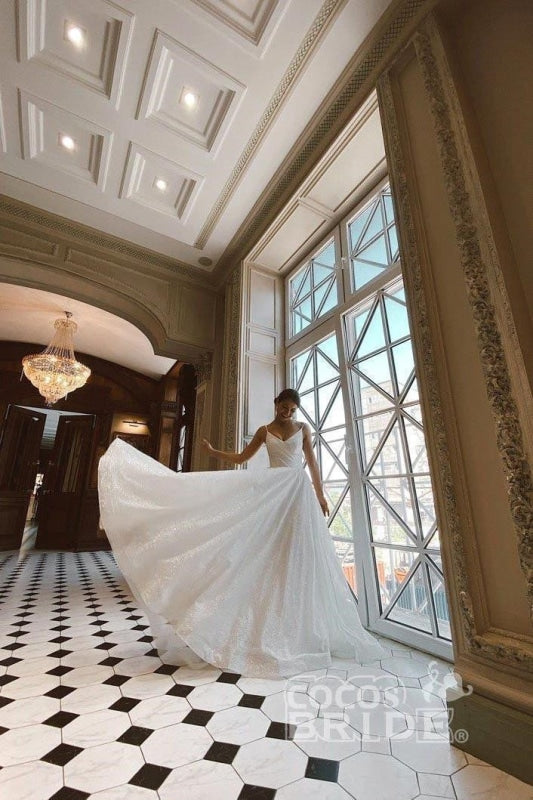 SD2128 Shiny Sequins Spaghetti Straps A-line Wedding Dress,PD22019