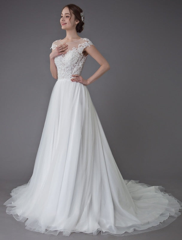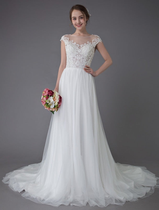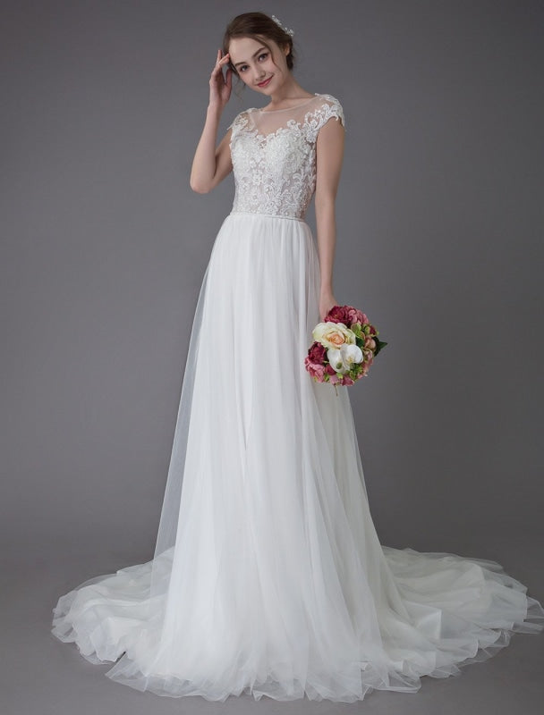 Beach Wedding Dresses Lace Tulle Summer A Line Ivory Luxury Beaded Summer Bridal Gowns,PD22027