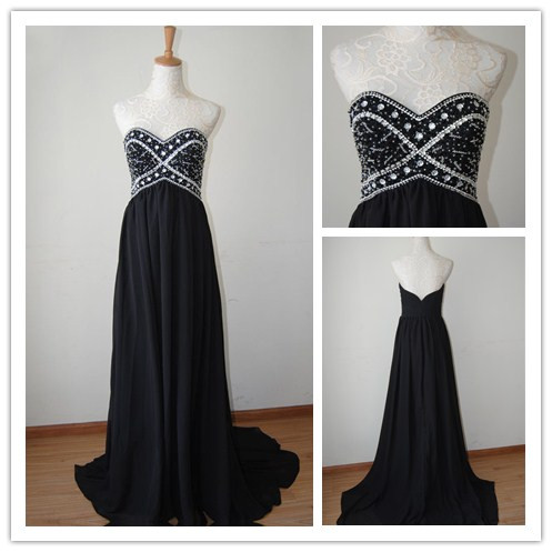 Pretty Black High Quality Sweetheart Court Train Prom Dress 2015, Prom 2015, Evening Dresses, Party Dresses, black prom dresses,PD380062