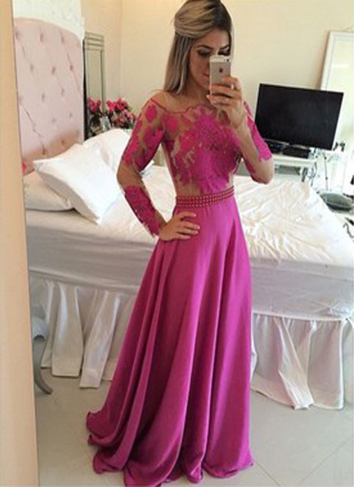 Long Sleeve Prom Dress,A-Line Prom Dress,Appliques Prom Dress,Sexy Prom Dress,15040118