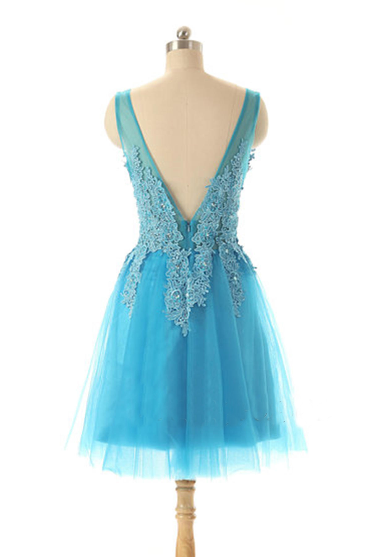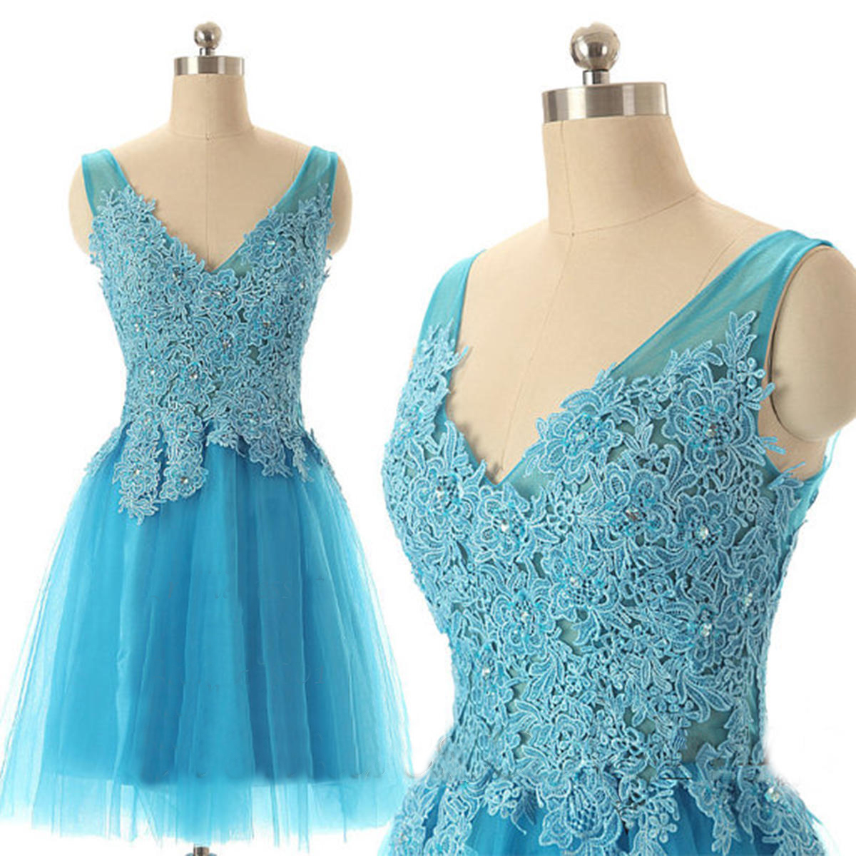 Blue prom dress, short prom dress, lace prom dress, cheap prom dress, pretty prom dress, homecoming dress,15040614