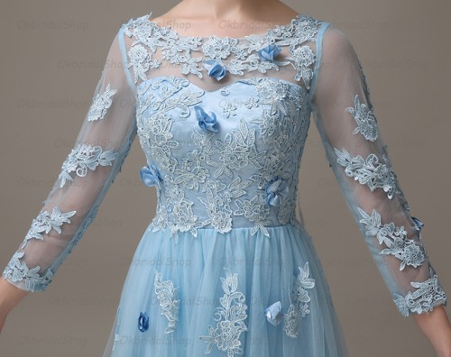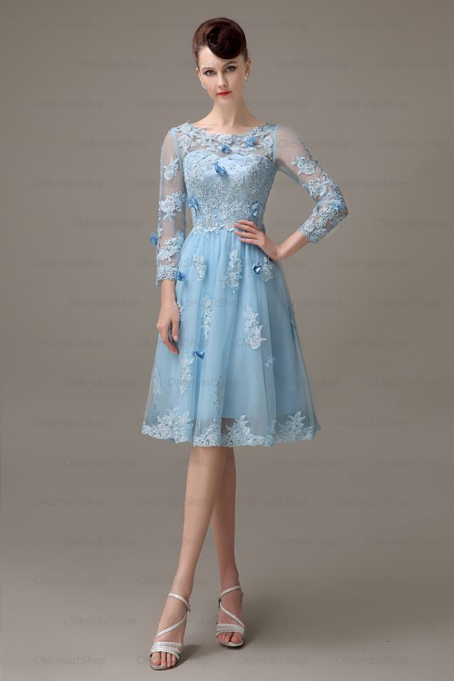 long sleeve prom dress, lace prom dress, short prom dress, unique prom dress, prom dresses 2014, evening dress, party dress, blue prom dress ,15001027