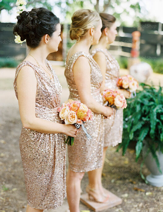 Gold Sequin bridesmaid dress,V Neck bridesmaid dress,Short bridesmaid dress,Open Back bridesmaid dress,Bridesmaid Dresses,160120001