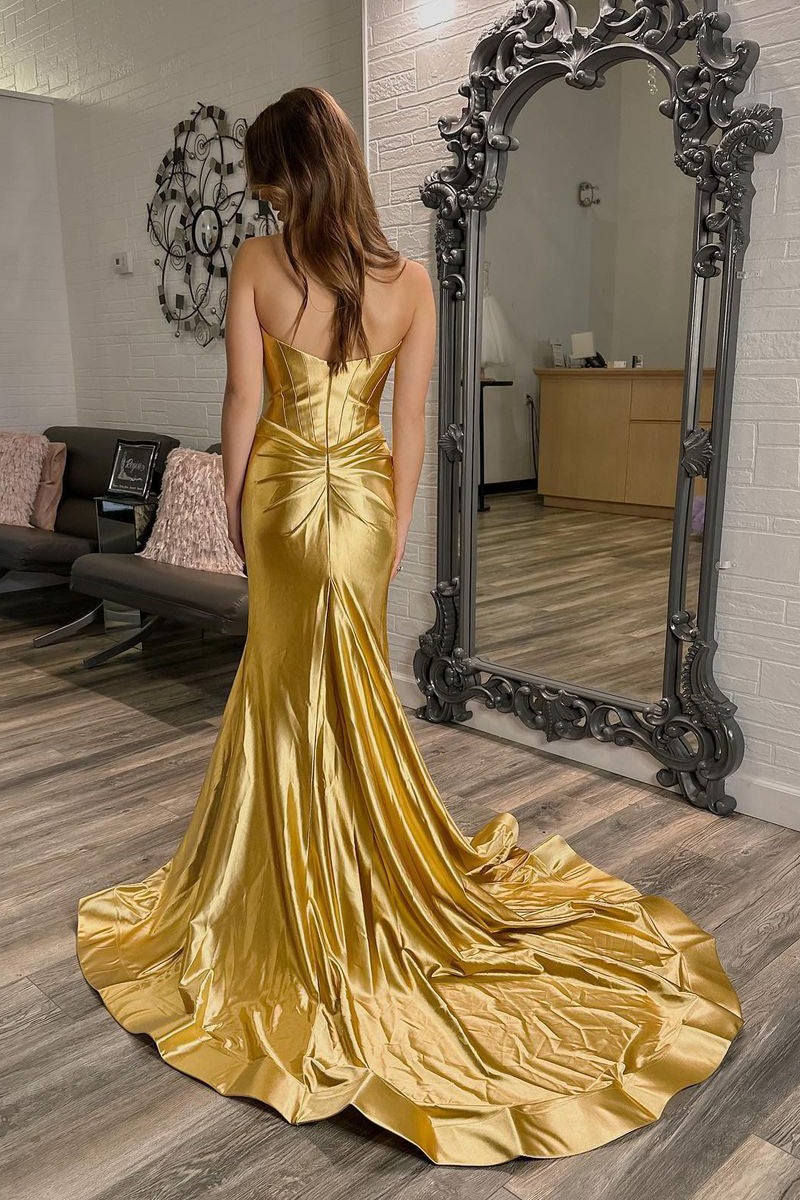Sweetheart Gold Satin Mermaid Long Prom Dresses,PD230574