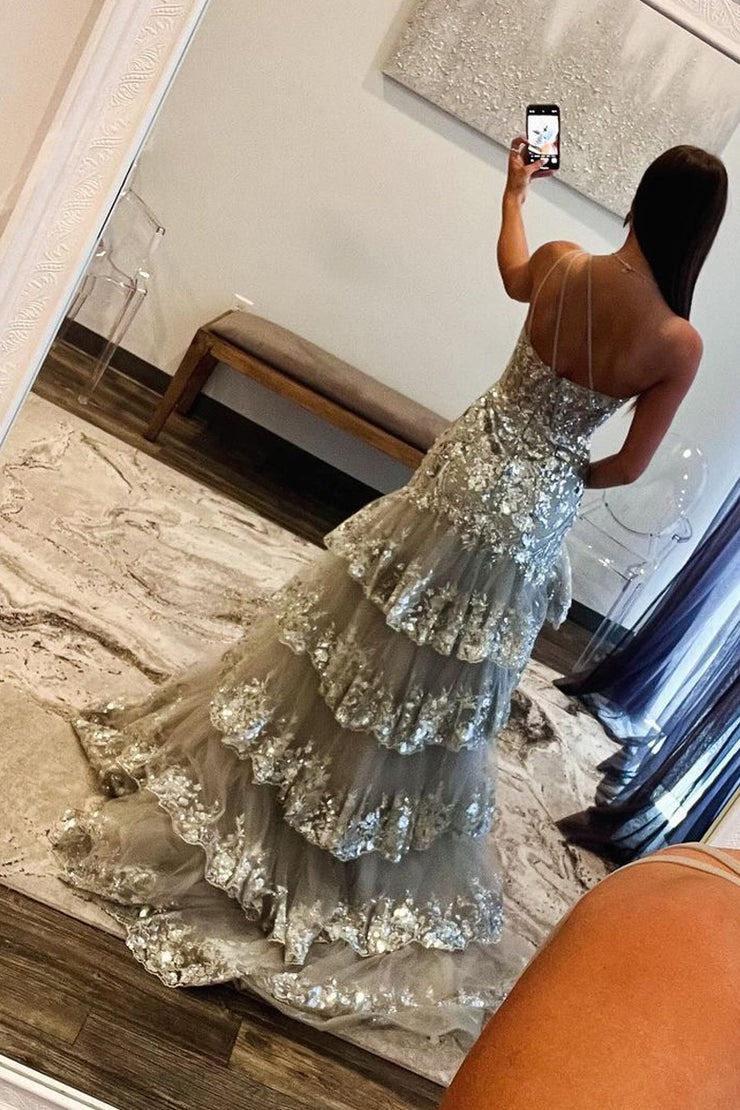 Sparkly One Shoulder Silver Sparkly Sequins Long Mermaid Prom Dresses with Slit ,PD230873