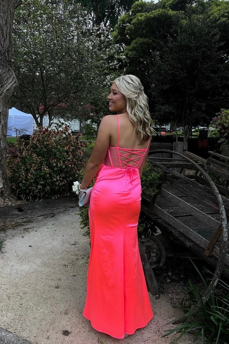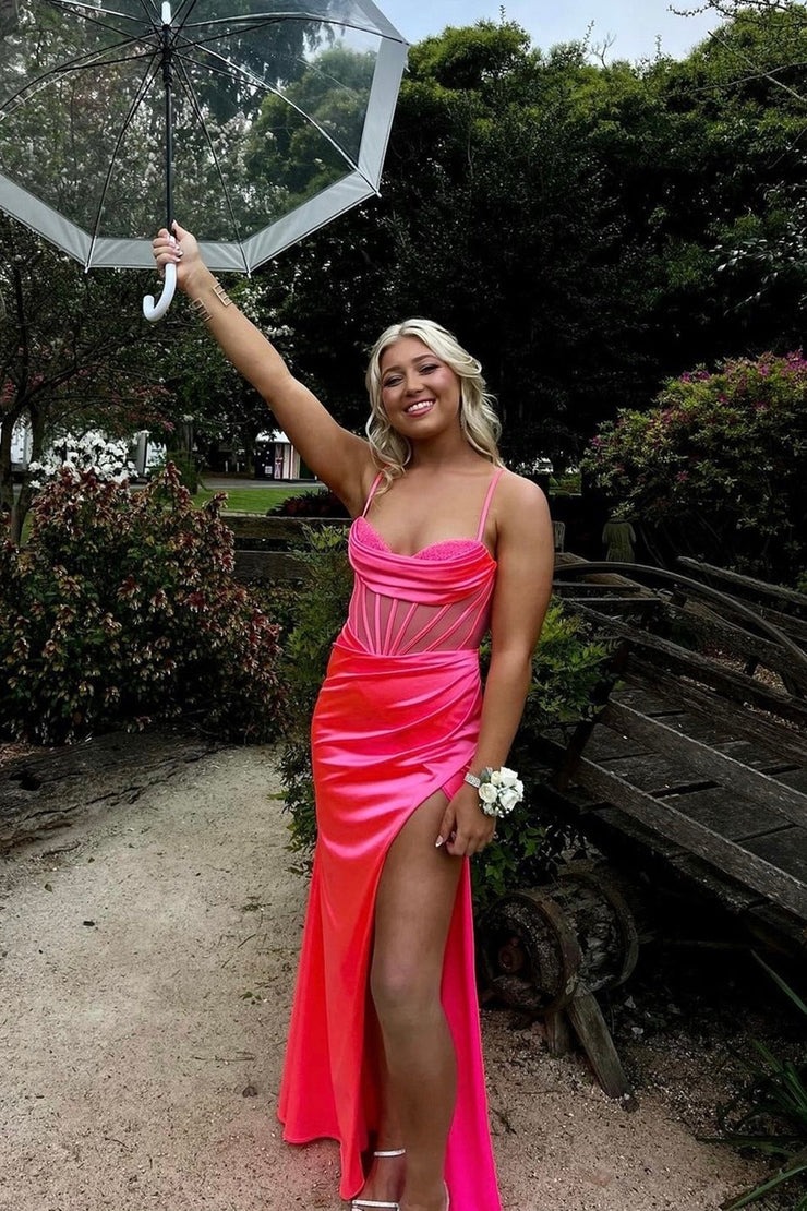 Charming Cowl Neck Satin Slit Mermaid Prom Dresses,PD230898