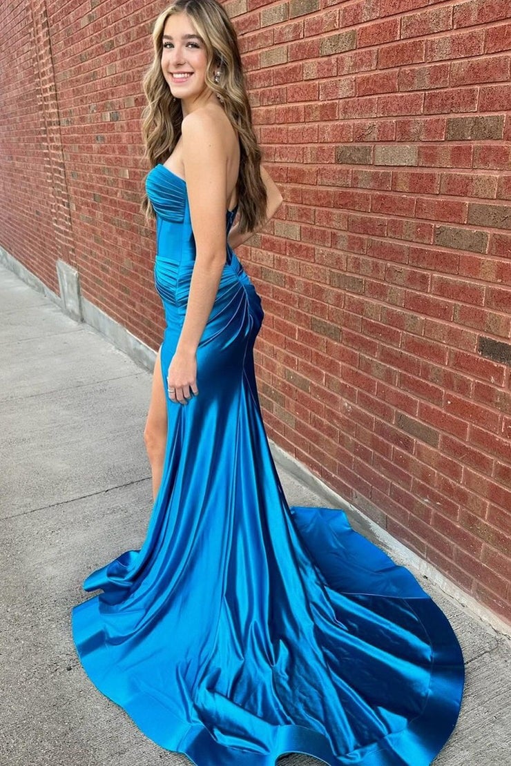 Charming Sweetheart Cutout Neck Satin Mermaid Prom Dress with Slit , PD231032