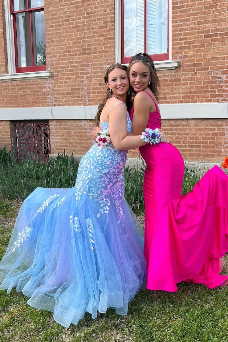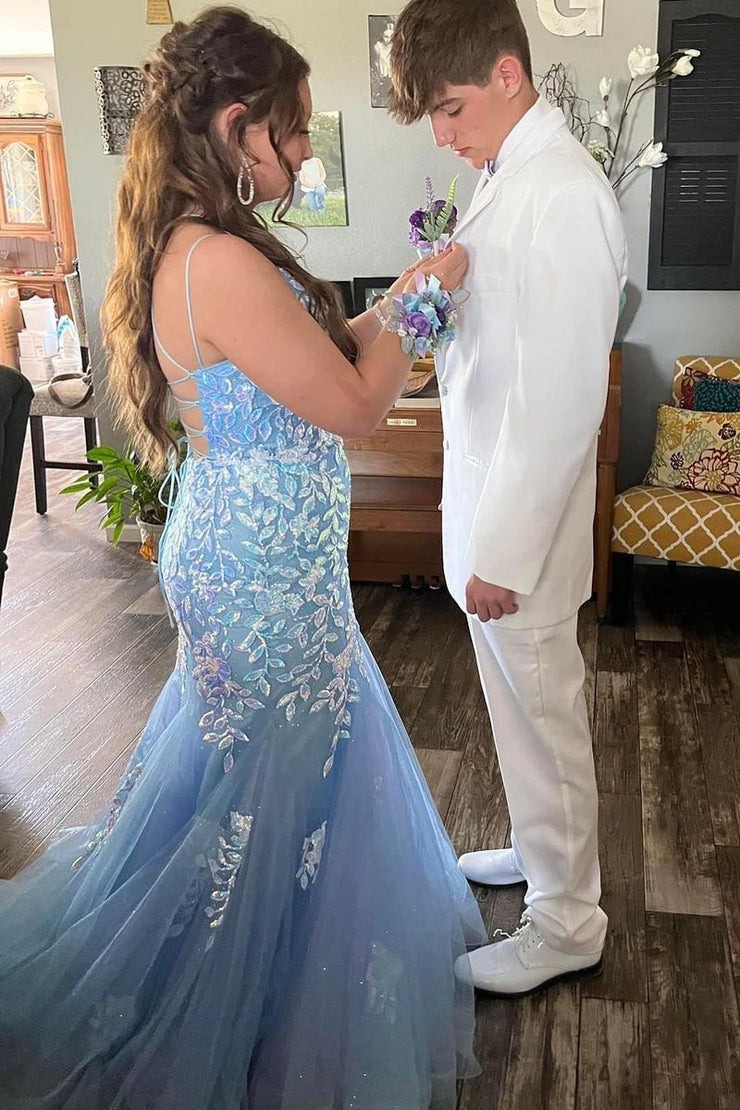Cute V Neck Light Blue Sequins Long Mermaid Prom Dresses ,PD231079