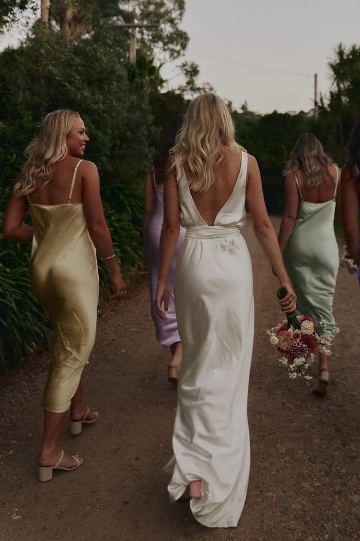 Mermaid Sheath V Neck Silk Satin Bridesmaid Dresses with Straps,PD231207
